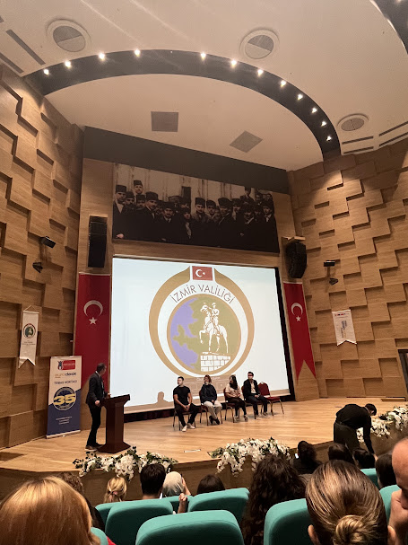 EURODESK Hizmetleri kapsamında Yüksekokulumuz Uluslararası İlişkiler Koordinatörlüğü Memuru Ece Çam ile Avrupa Birliği projelerine ilgi duyan, gönüllü çalışmalarda aktif rol alan ve yüksek motivasyona sahip öğrencilerimiz, İzmir İktisat Kongre Merkezi Konferans Salonu’nda düzenlenen “Gençler İçin AB Fırsatları – EURODESK Bilgilendirme Etkinliği ve Bilgi Yarışması” programına katılım sağladılar.