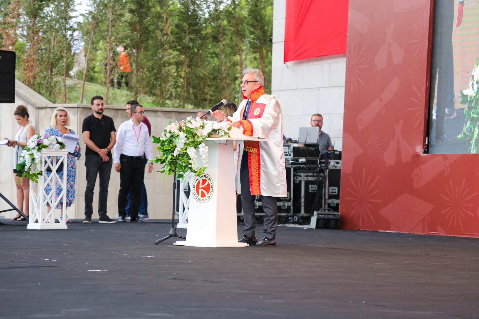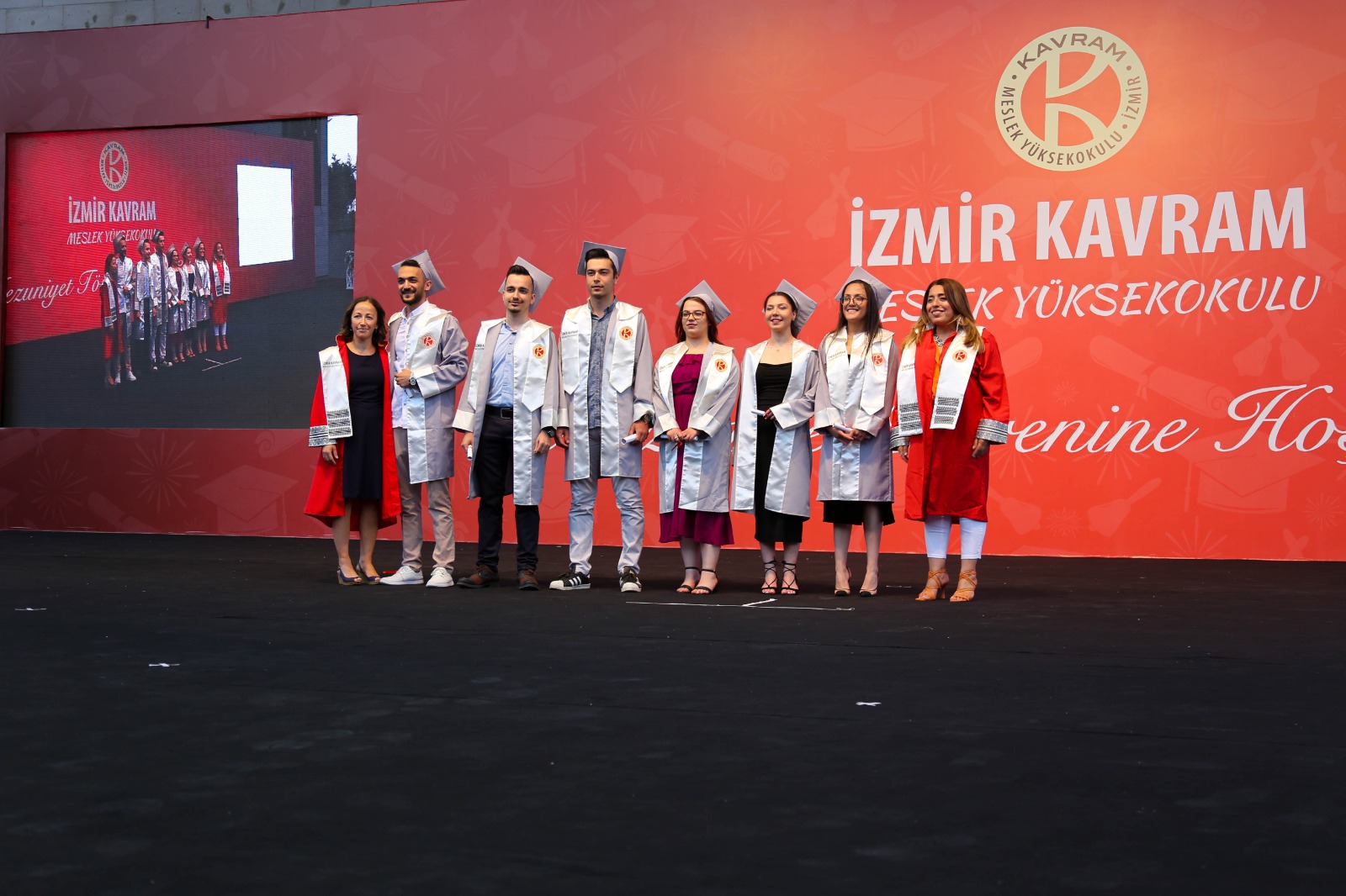 İzmir Kavram Meslek Yüksekokulu mezuniyet töreni Aşık Veysel Amfi Tiyatro'da kutlandı. Programlar halinde sahneye çıkan gençler diplomalarını aldı. Mezuniyet programı, mezun öğrencilerin sahneye çıkması ve kep fırlatması ile sona erdi. Törene, İKMYO Mütevelli Heyeti Başkanı Dr. Erkan Çelik, İKMYO Müdürü Prof. Derman Küçükaltan, İzmir Vali Yardımcısı Fatih Kızıltoprak, Kaymakamı Gökhan Görgülüarslan,akademisyenler ve veliler katıldı. Törende konuşan Dr. Erkan Çelik, bir yılda 30'a yakın mesleki iş birliğine imza attıklarını hatırlatarak, meslek yüksekokulları için iş birliklerinin önemine vurgu yaptı.